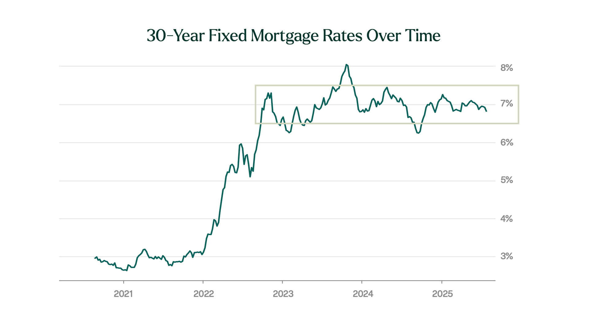 Mortgage rates remain one of the key forces shaping today's housing market. For more of the past three years, they have stayed between 6.5% and 7.5%, well above pandemic-era lows but far below the double-digit highs of earlier decades. This stabiliy at higher levels has reshaped affordability and market expectations.