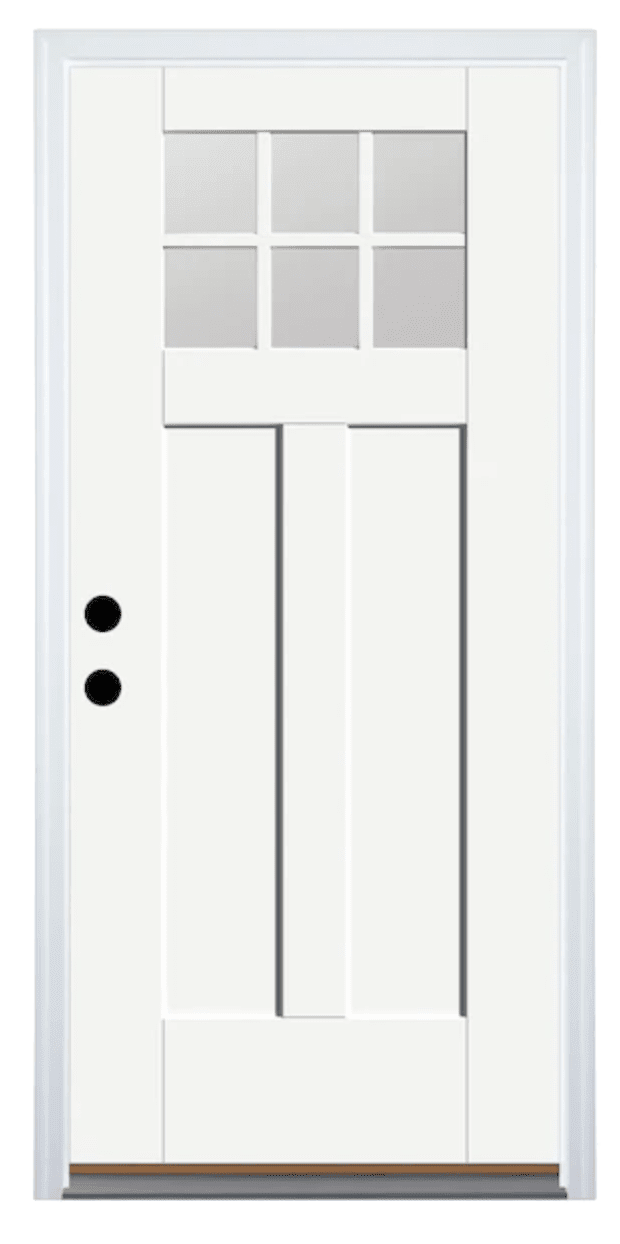 FRONT DOOR This Shaker-style front door is ready to be painted in any exterior color that calls to you. Therma Tru Craftsman Ready-To-Paint 6 Lite Door, $534, lowes.com