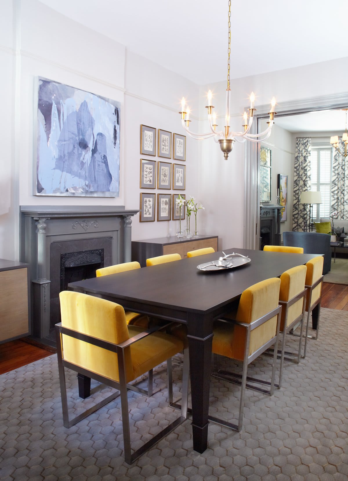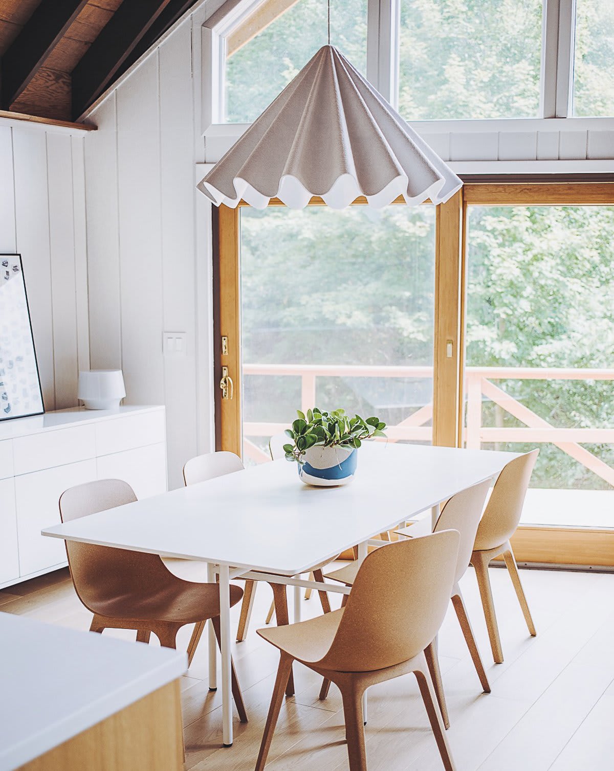 “Weʼre generally attracted to clean, minimal design but also like interesting shapes and fabrics that provide texture and variety. The dining room light fixture was a splurge, but we knew it was something that would tie the room together!”
