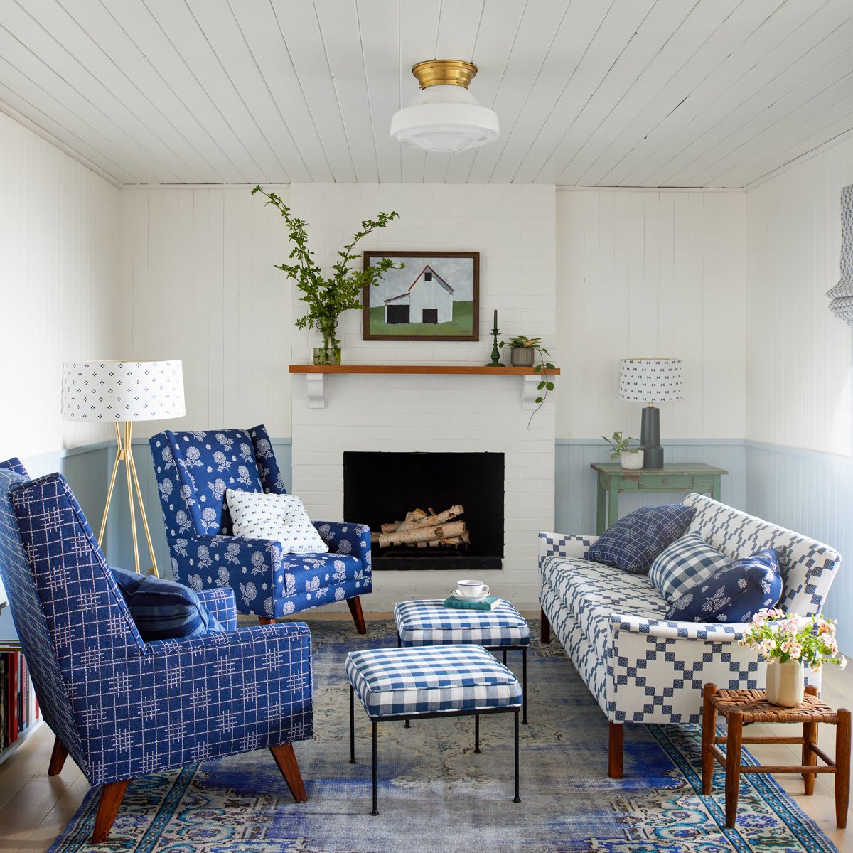 A modern take on a bygone era, warm woods and vintage furnishings set the foundation for traditional patterns like checks, plaids, folk prints, and restrained florals. There’s a beautiful juxtaposition of rugged and refined. Classic, comfortable, warm, and inviting...with bonus points for bricks and fireplaces.
