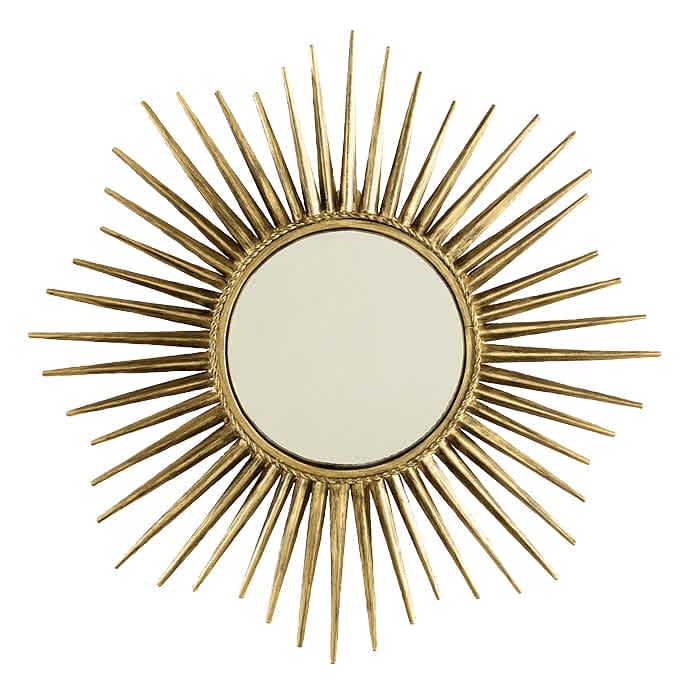 wallpaperdirect.comMirror, Mirror on the Wall The antique gold finish on this starburst mirror by Suzanne Kasler gives it a vintage feel, and the convex mirror lends to the fun. Suzanne Kasler Sunburst Mirror, $149,