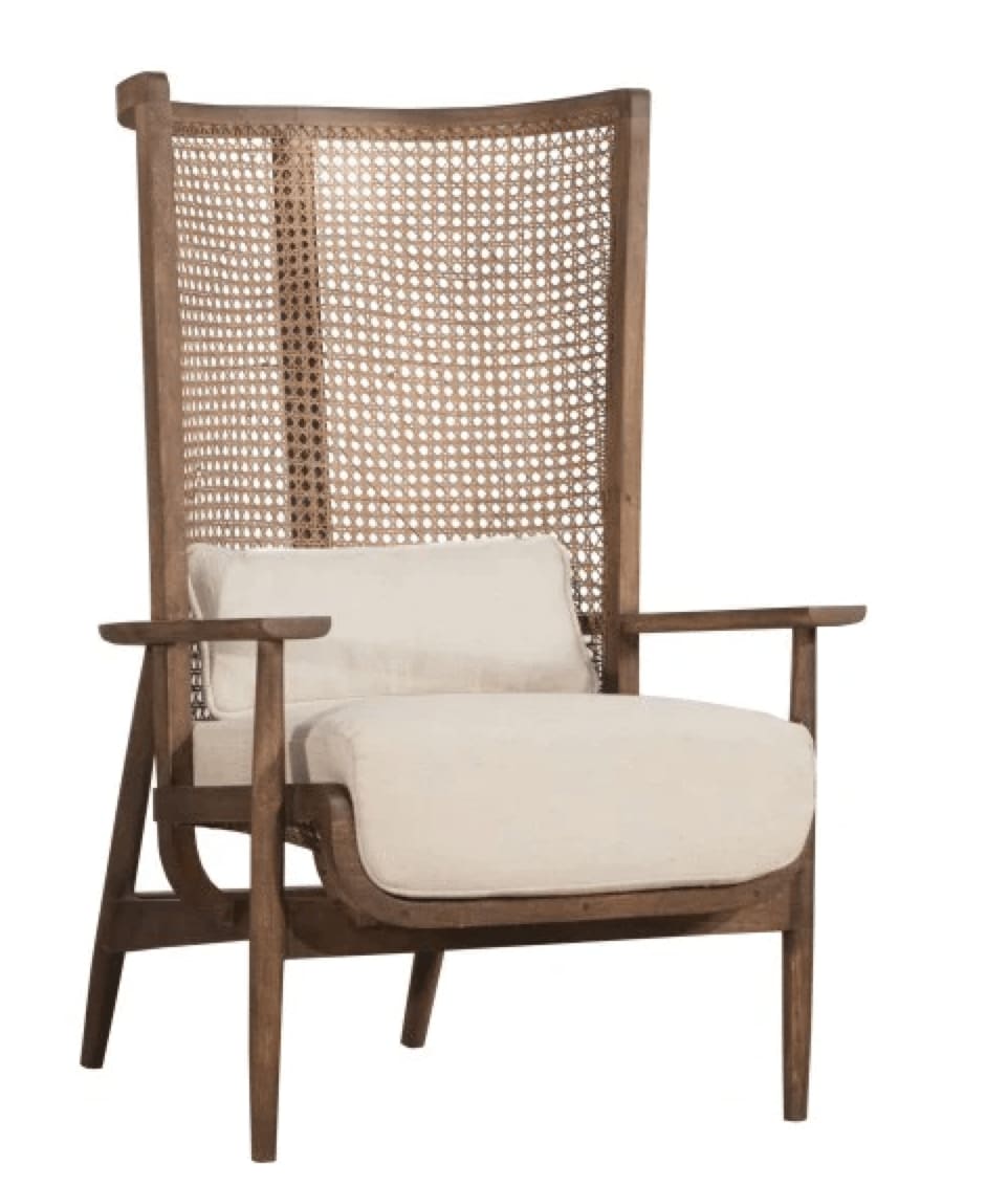 Make a statement with this Wingman lounge chair. Organic materials are set in a dramatic architectural curve—the hand-woven cane resting against the solid wood frame. Wingman Lounge Chair, $2,302,