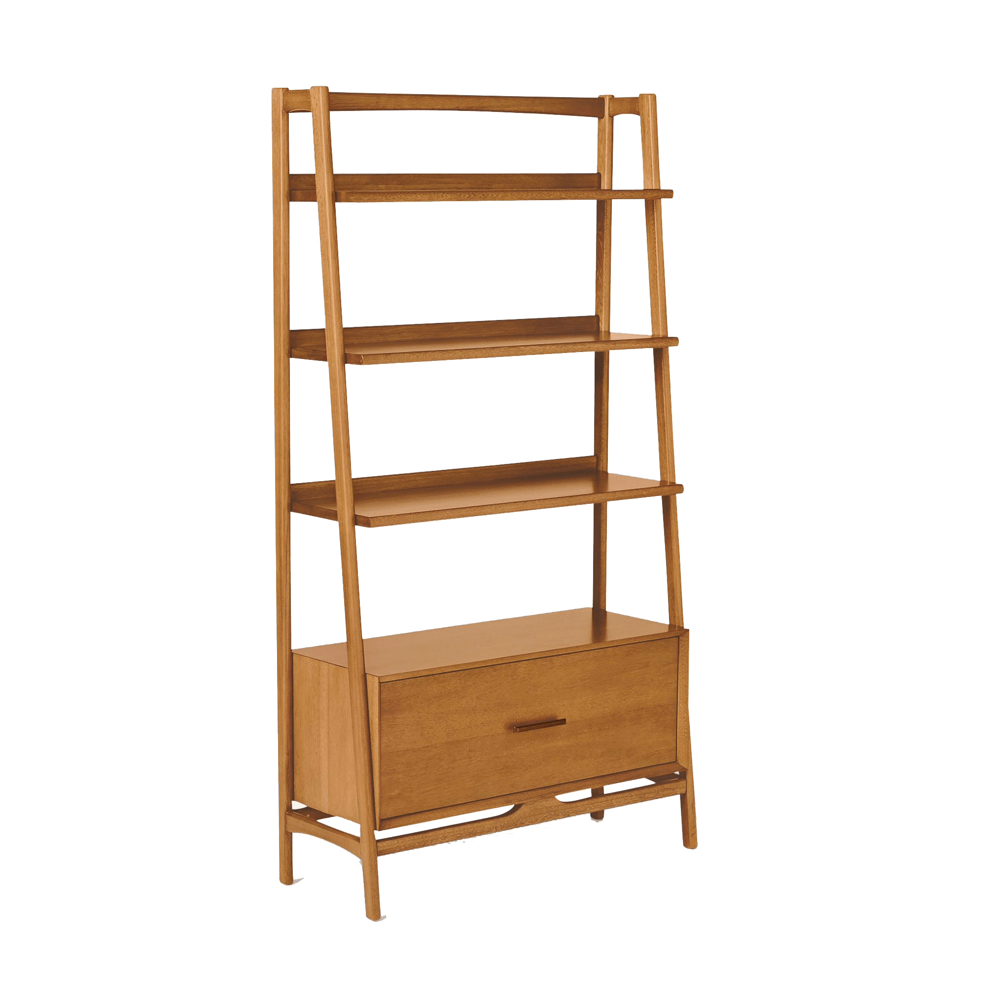 shadesoflight.comLean into It The warm acorn finish lands these leaning bookshelves firmly in the mid-mod world. Use a pair to flank a focal point, or side-by-side to create a longer display area. Mid-Century Bookshelves, $699,