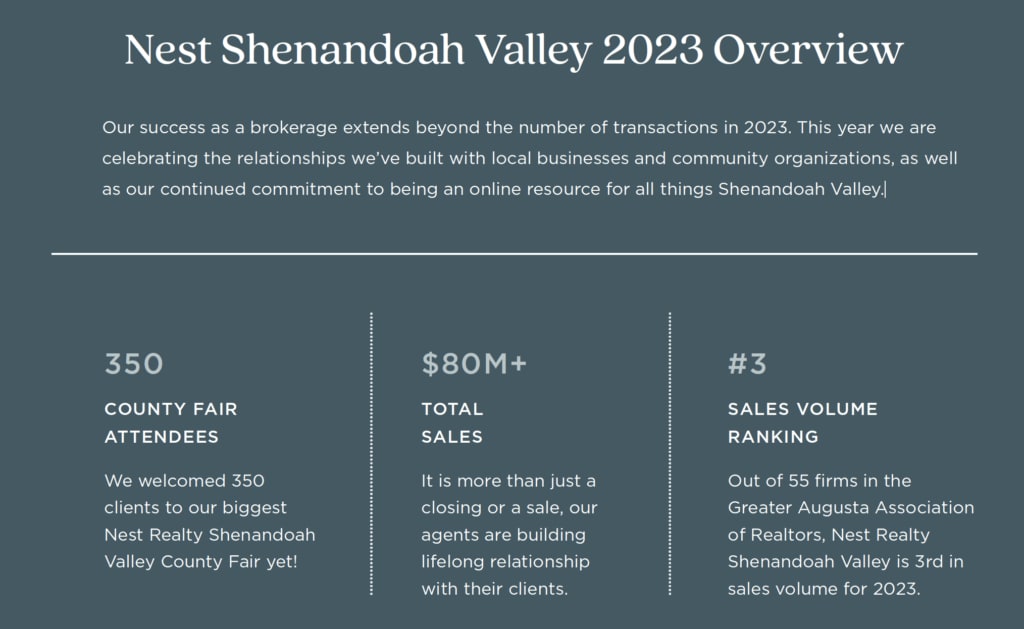 We are proud to present you with this synopsis of the national, regional, and localized trends that matter most, found here in our Shenandoah Valley 2023 Annual Report .