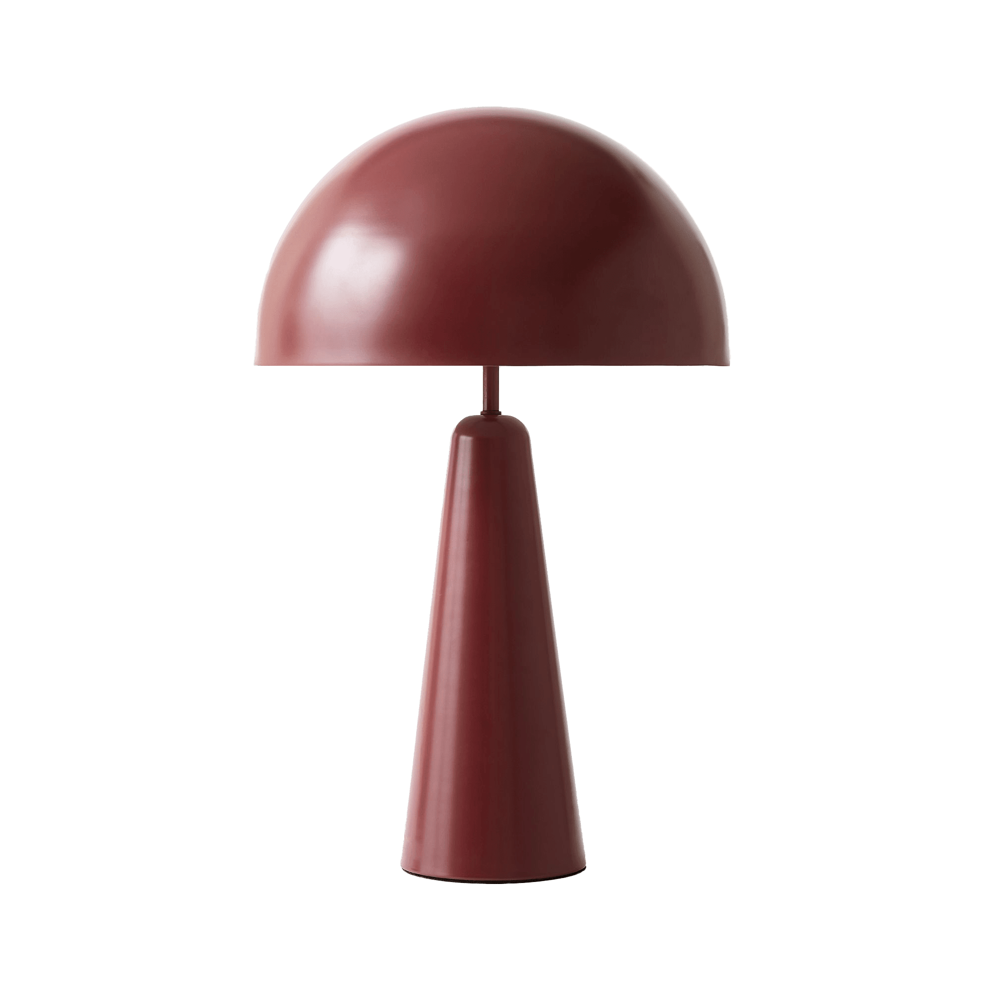 LAMP The dramatic lines of this table lamp are enhanced by the rich oxblood color. Hastings Table Lamp, $249,
